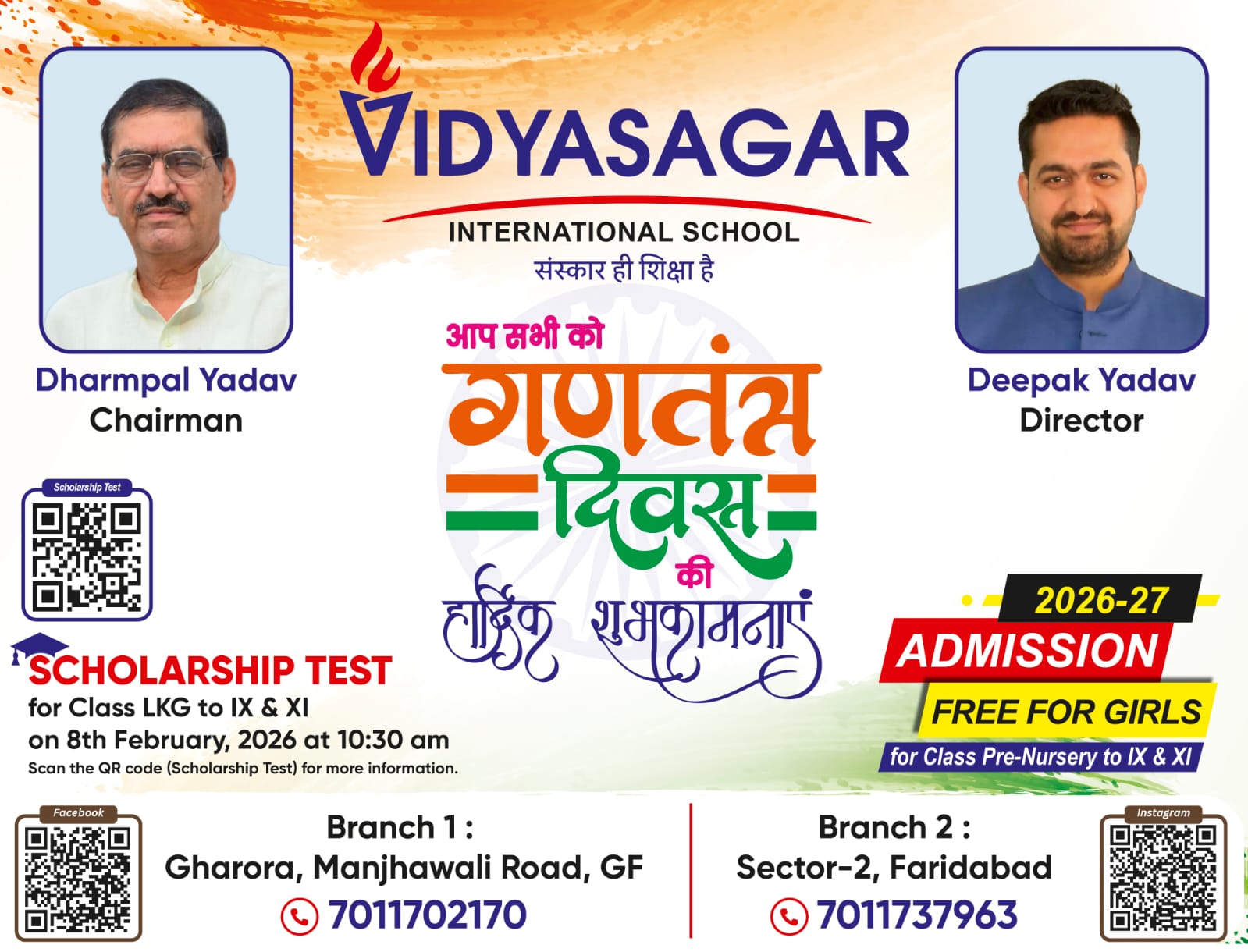 विद्यासागर इंटरनेशनल स्कूल की ओर से 77 वे गणतंत्र दिवस की हार्दिक शुभकामनाएं